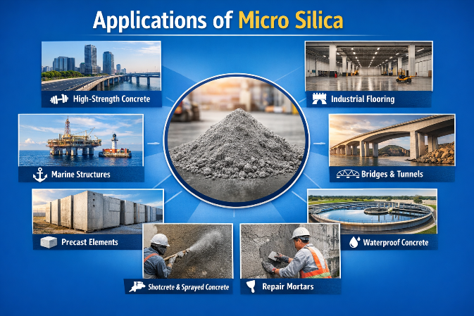 Micro silica is widely used across multiple construction applications: